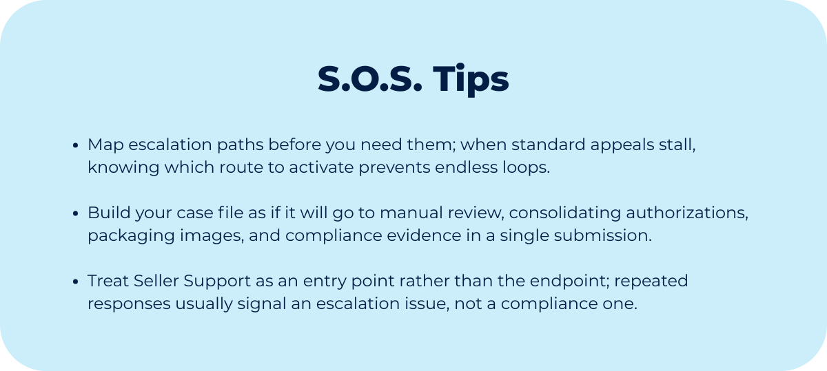 Standard appeal paths were no longer effective. Those workflows are designed for clear violations, not for edge cases created during early policy rollouts, and re-entering them simply recycled the listing through the same decision loops.