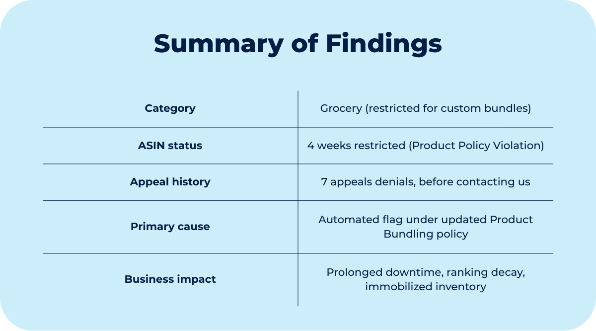 At first glance, the explanation seemed straightforward. Amazon had recently rewritten its Product Bundling policy across several sensitive categories, including Grocery & Gourmet, so the natural assumption was that something was missing.